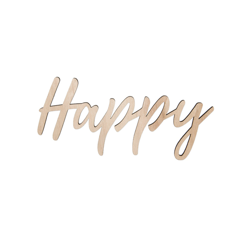 3 Stück Holzwort ''HAPPY'' mit Magneten 12,5x28cm natur