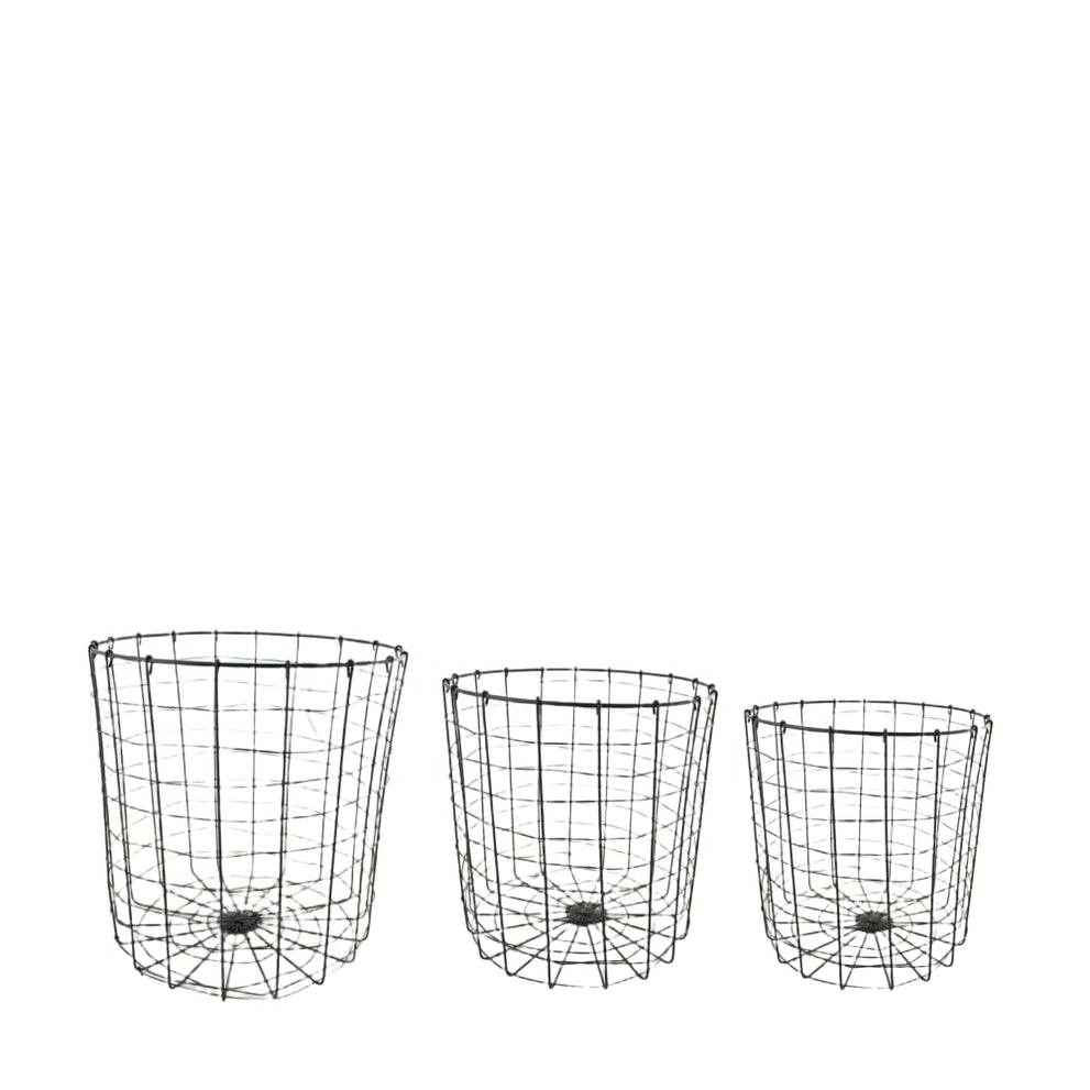 Korb rund aus Eisen 28x28x28cm 3er-Set Schwarz