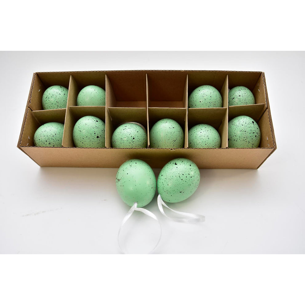 Schachtel mit 12 Hühnereiern auf Band Grün