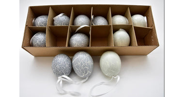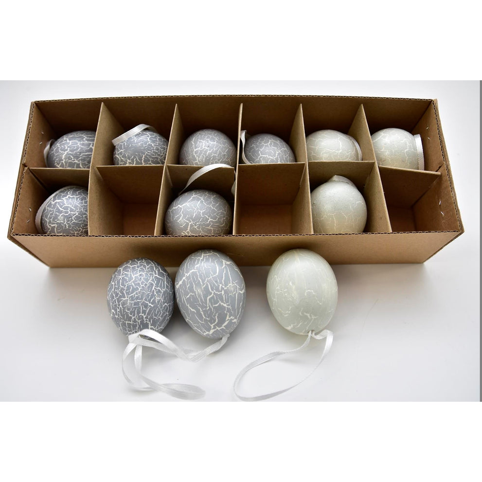 Schachtel mit 12 Hühnereiern auf Band verarbeitet Grey mix