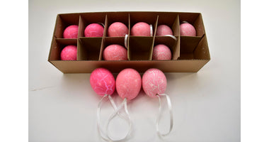 Schachtel mit 12 Hühnereiern auf Schleife dekoriert Pink mix