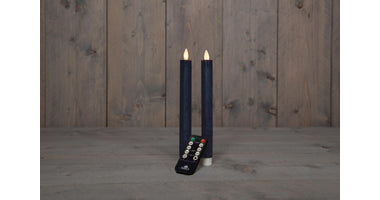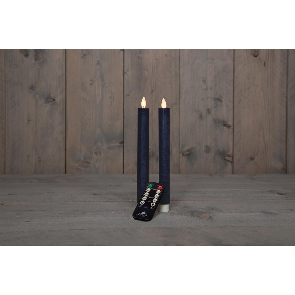 DINNERKERZE BO 2ST ANTIKBLAU RUSTIK WACHS 23CM BEWEGLICHE FLAMME MIT FERNBEDIENUNG 2X2AAA