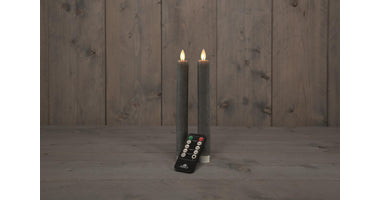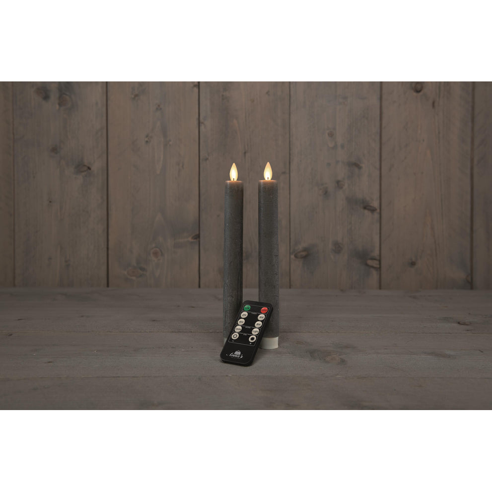 DINNERKERZE 2ER-SET GRAU RUSTIKAL WACHS 23CM BEWEGLICHE FLAMME MIT FERNBEDIENUNG 2X2AAA
