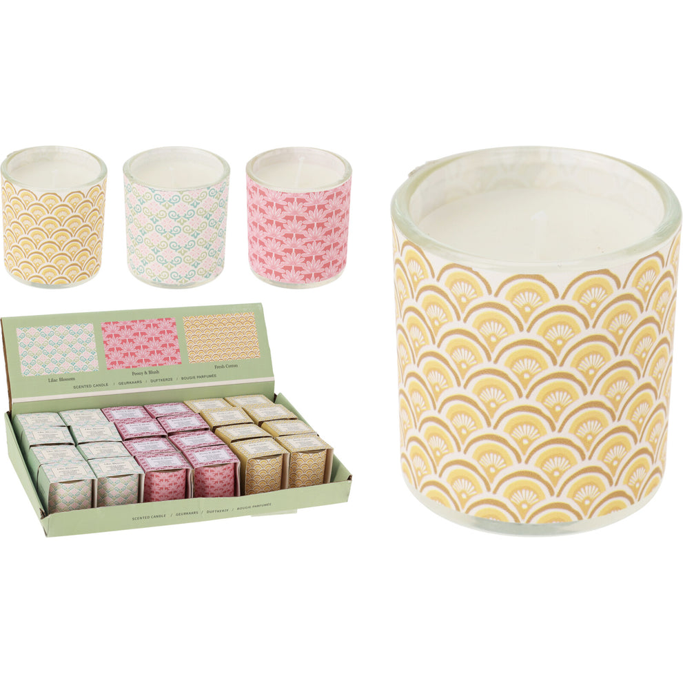 DUFTKERZE IM GLAS D4,5 H5,2CM 3 SORTEN IM DISPLAY