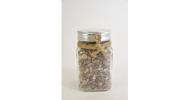 Glasgefäß mit Muschelmischung 7x7x12cm (9015)