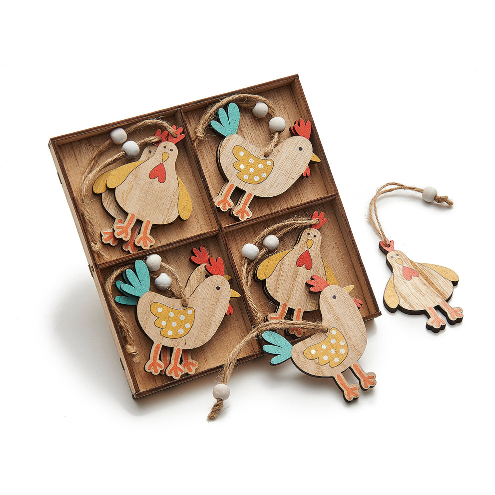 Hölzerne Ostern Huhn Aufhänger 7cm 8pcs