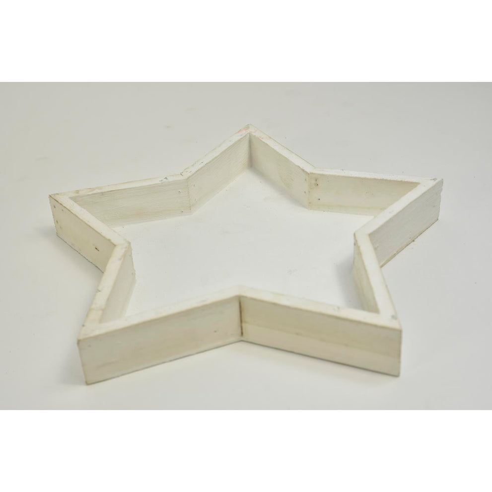 Holztablett Stern weiß-wash 40x40x3cm