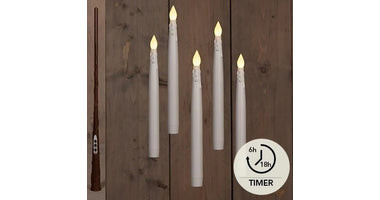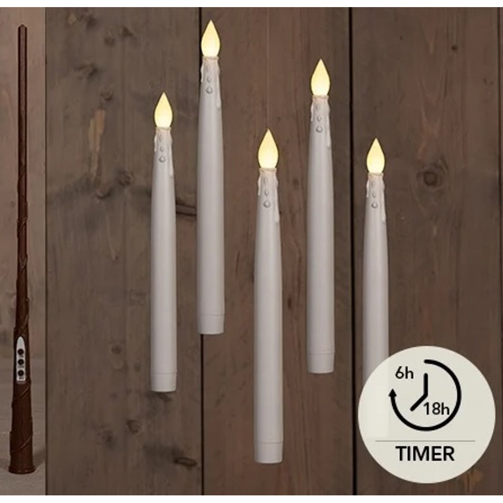 SCHWEBENDE LED-KERZE MIT TIMER, INKLUSIVE ZAUBERSTAB, DRAHT UND HAKEN, 5 STÜCK, H28,5 CM, WEISS