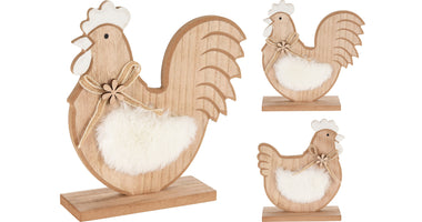 HUHN MIT BLUME 14X4.5X14CM 2 SORTIERT MDF