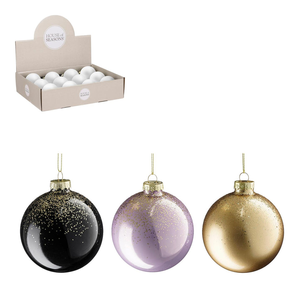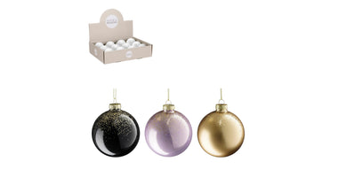 Kugel Glas schwarz l.lila gold 3 sortiert Display - d8cm