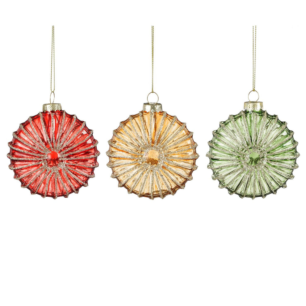 Kugel Glas Streifen rot grün gold 3 sortiert Display - d8cm