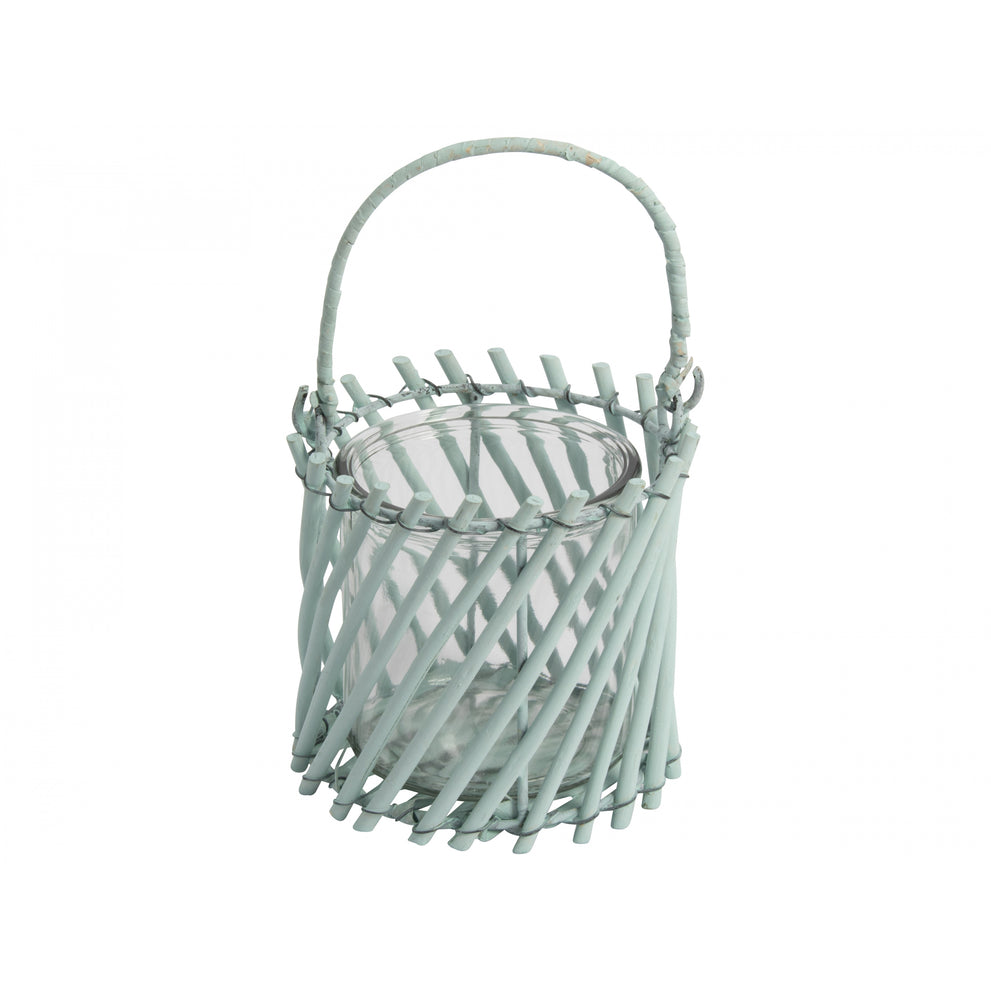 Windlicht Gusta Rattan Türkis D13 H12/20cm