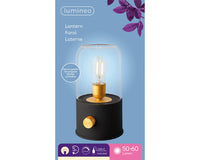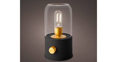 LED-Campinglampe, wiederaufladbar, schwarzes Plastikgehäuse, Innendurchmesser 11 cm x Höhe 20 cm