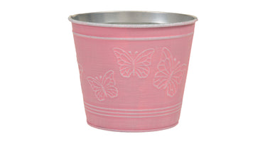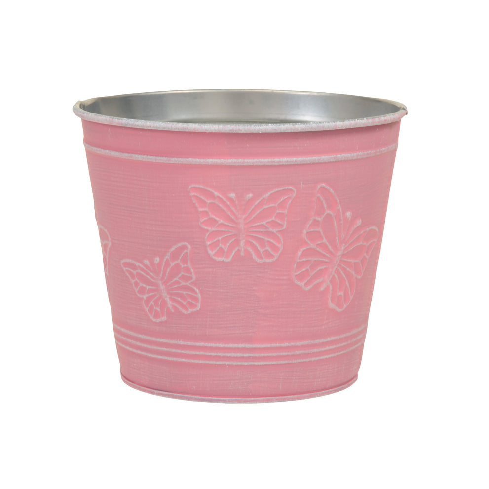 Metallkorb mit Schmetterlingen rosa Ø 14x12 cm