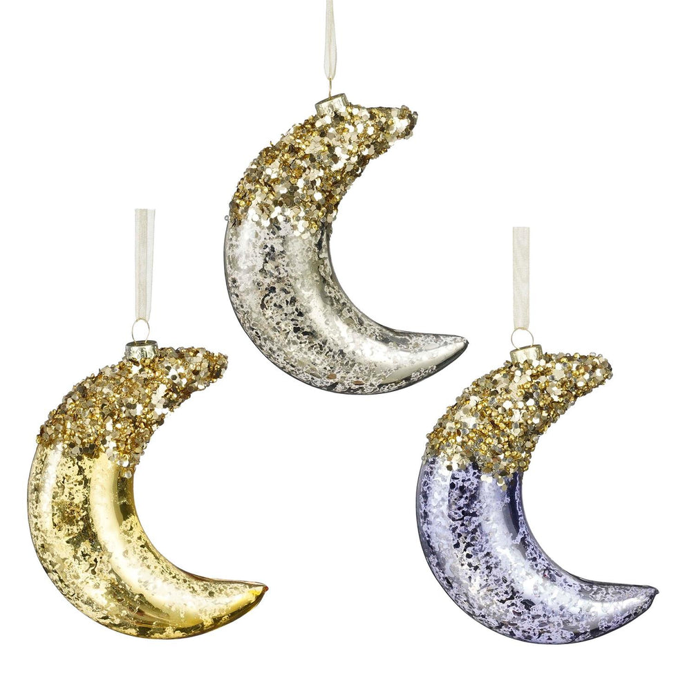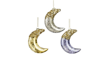 Ornament Mond Glas Silber Blau Gold 3 sortiert - l9.5xb3xh12cm