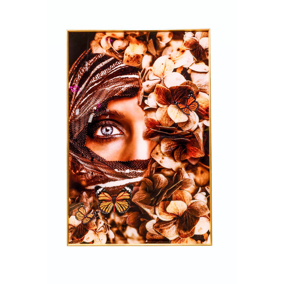 BEDRUCKTE DAME MIT SCHMETTERLING AUF GLAS 80X120X3,5