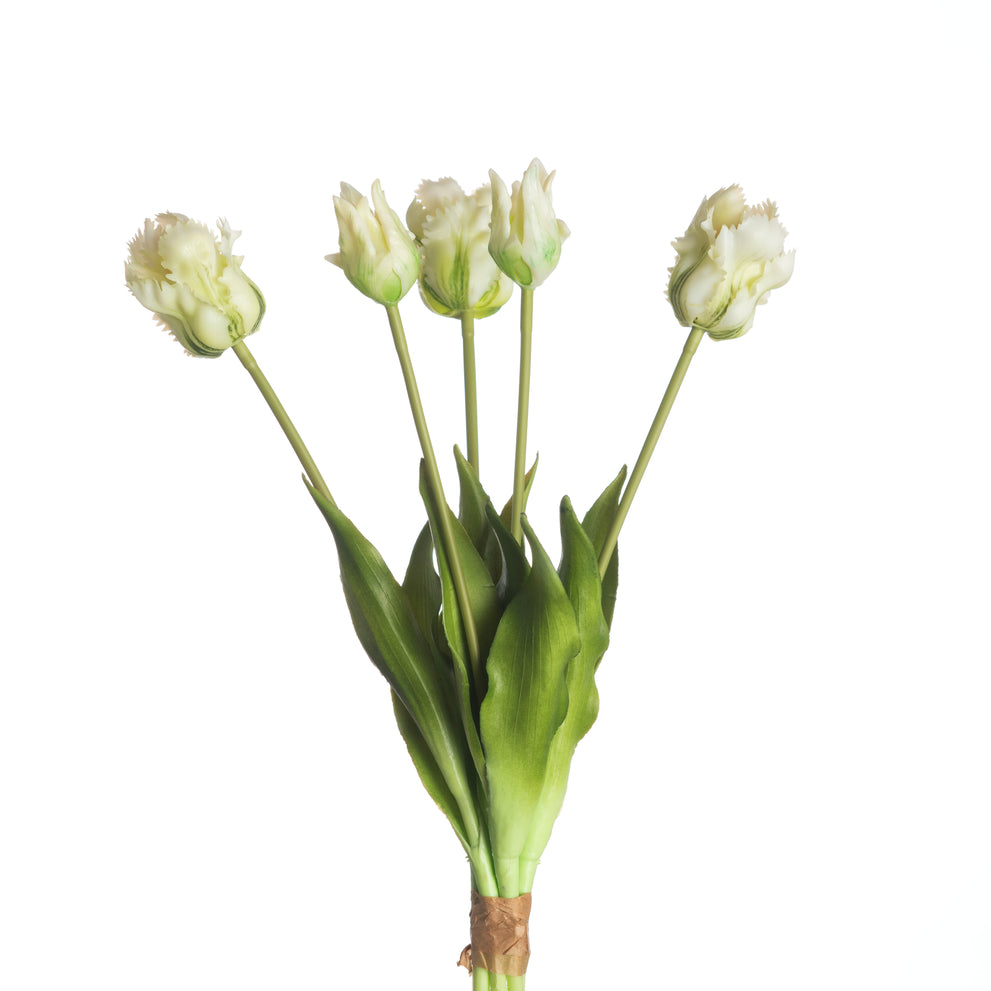 Real Touch Papageientulpe x5 L40cm Weiß/Grün