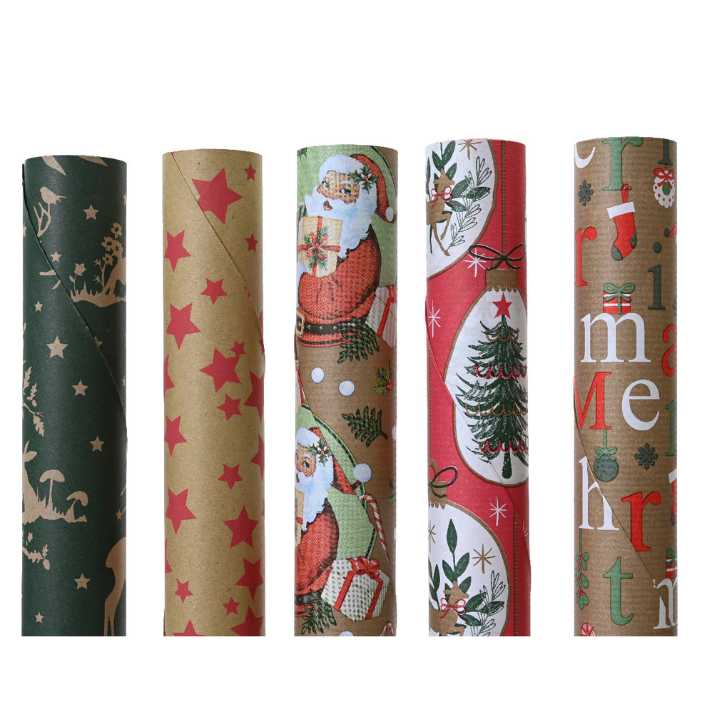 Rolle Geschenkpapier, 5 verschiedene Weihnachtsmotive, 200 x 70 cm