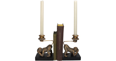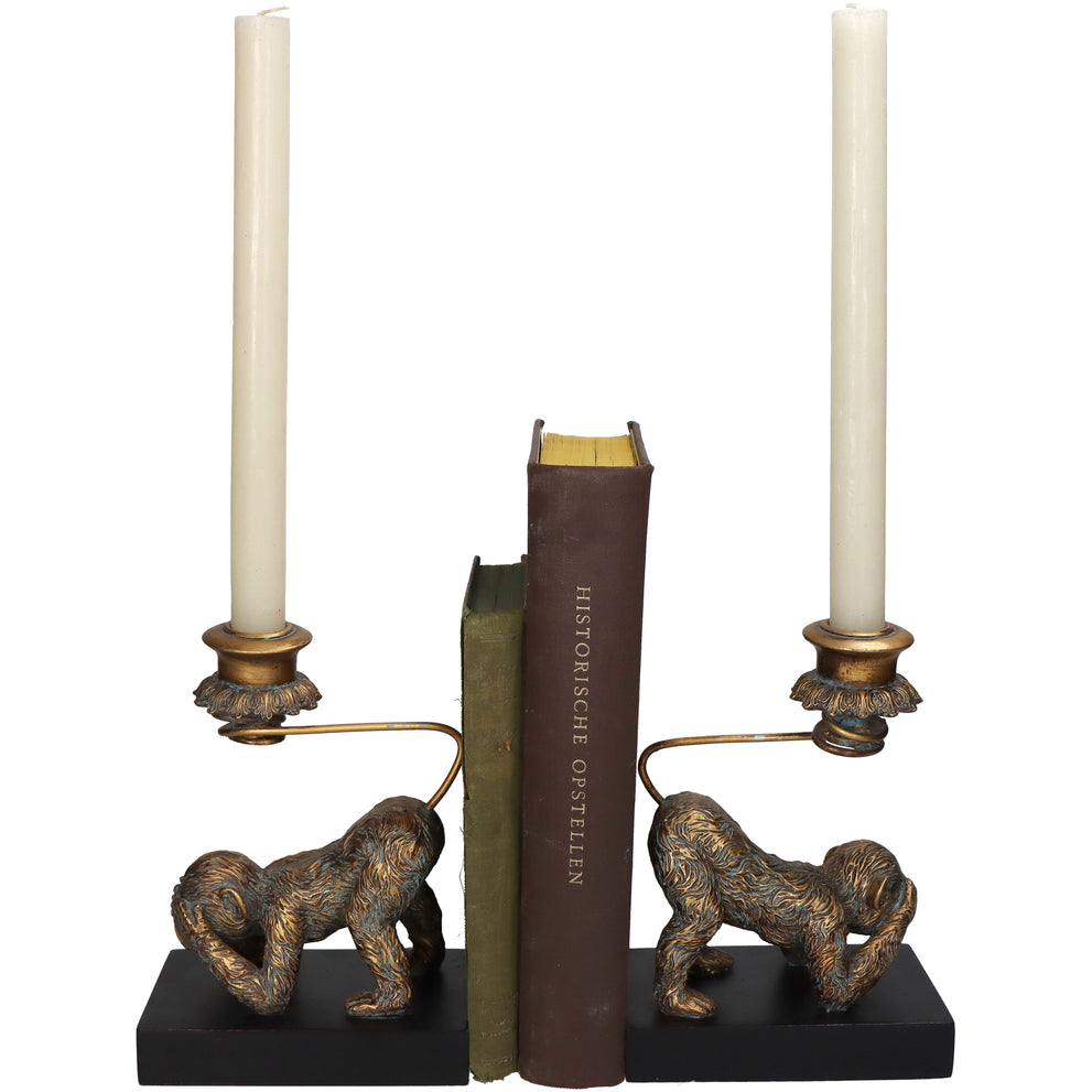 Set/2 Buchständer Affe Polyresin Gold 28x8.5x19cm