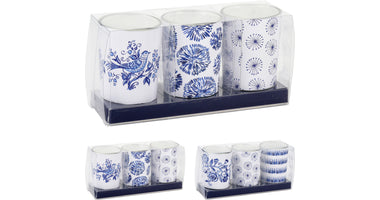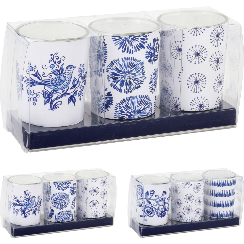 SATZ/3 KERZE IN GLAS DELFTER BLAU D5 H6CM 2 SORTIERTE STILE