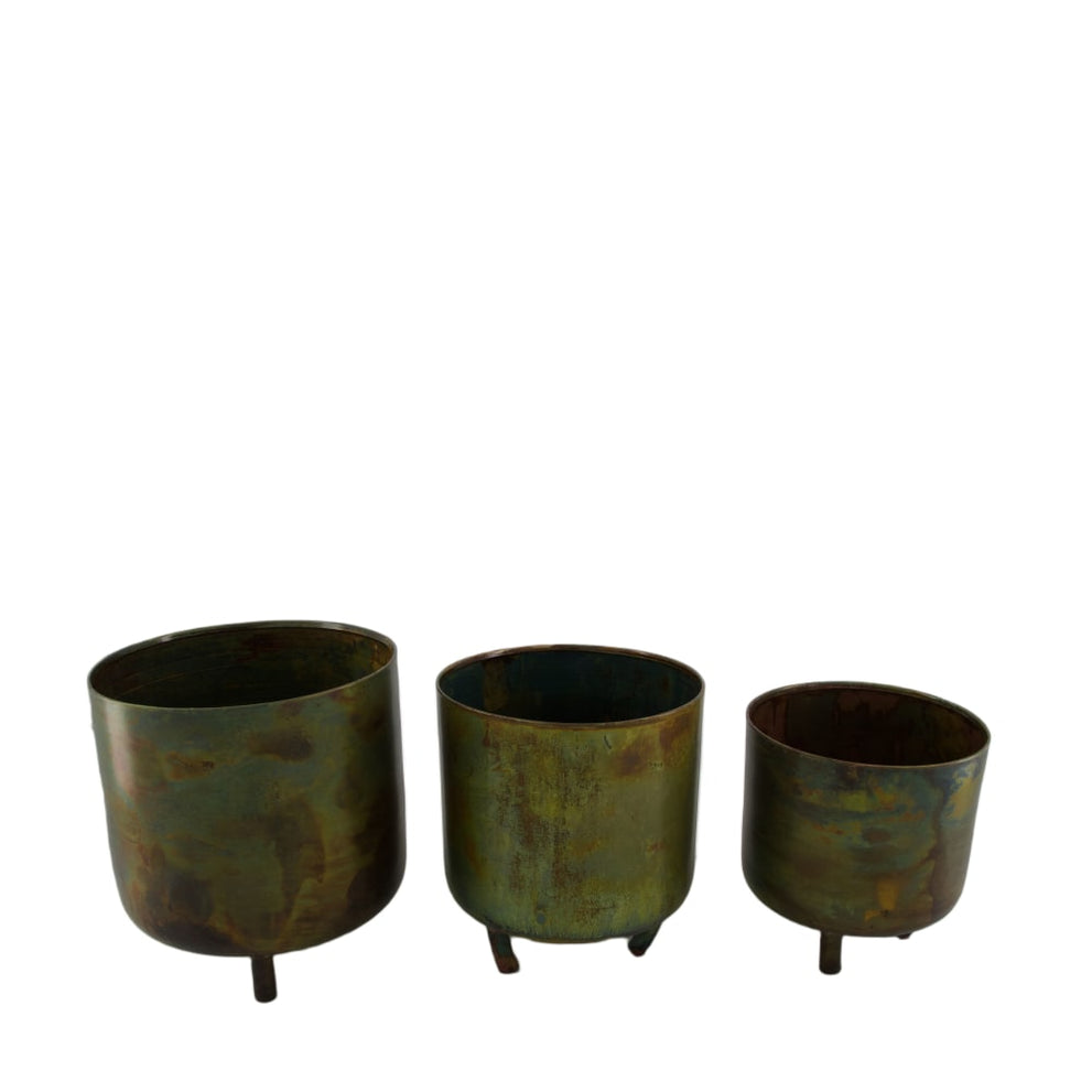 Set/3 Pflanzgefäß Metall auf Füßen 17x17x20cm Antique Green