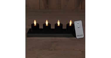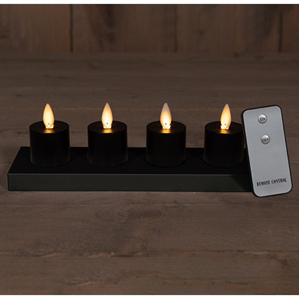 SET 4ST AUFLADBARE BEWEGLICHE FLAMMEN-TEELICHTER SCHWARZ D3,8 H6CM