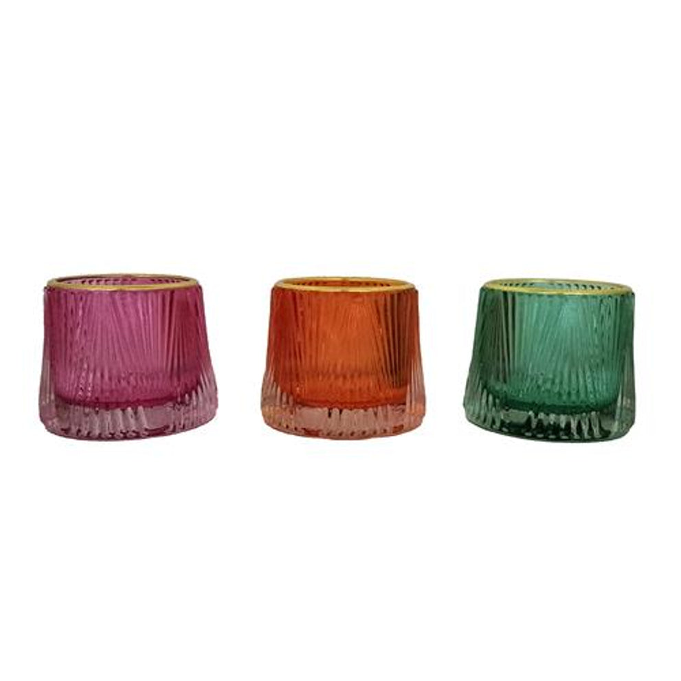 Teelichthalter Glas Castro 3 sortiert D8 H7cm