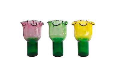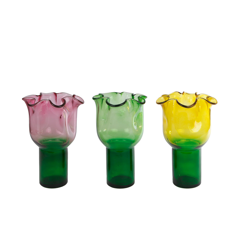 Vase "Tulpe" rosa/l.grün/gelb 3 sortierte Gläser 15x15x26cm