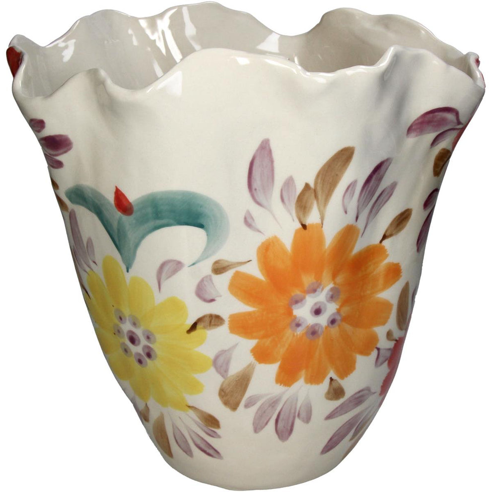 Vase Blumen 28,5x27x28cm Feines Steingut Mehrfarbig