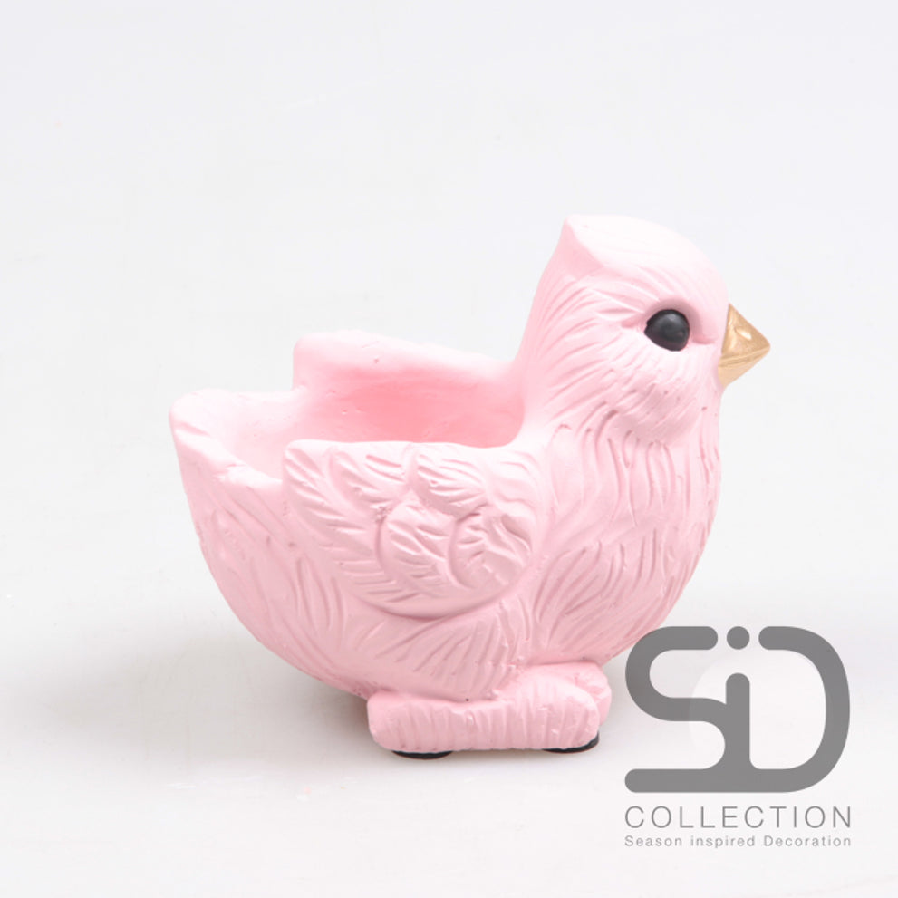 VOGEL MIT PFLANZER ZEMENT 12X8X7,5 CM ROSA
