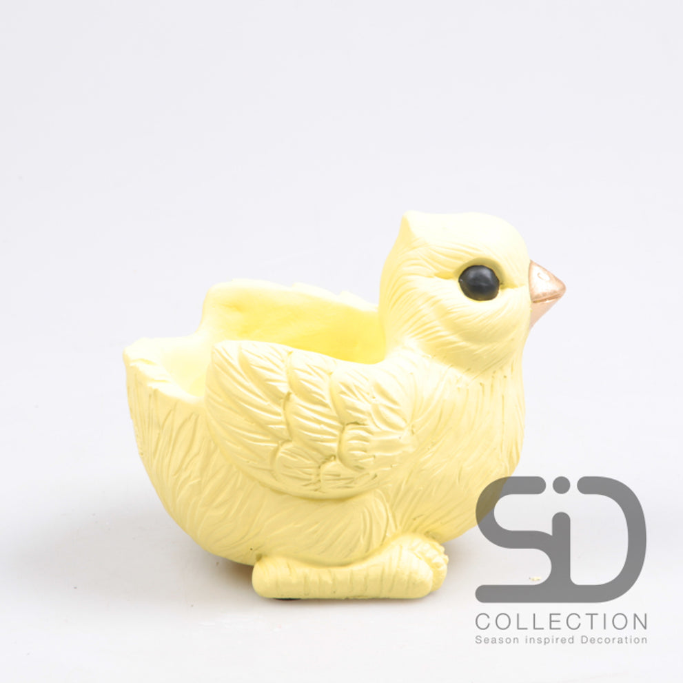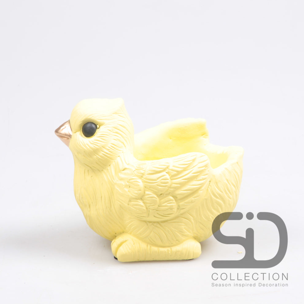 VOGEL MIT PFLANZGEFÄSS ZEMENT 15X10X12 CM GELB