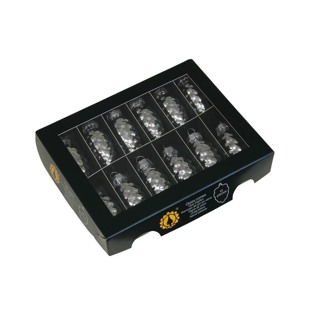 w/b. 12 glass cones/cap silver shiny 60 mm