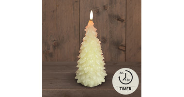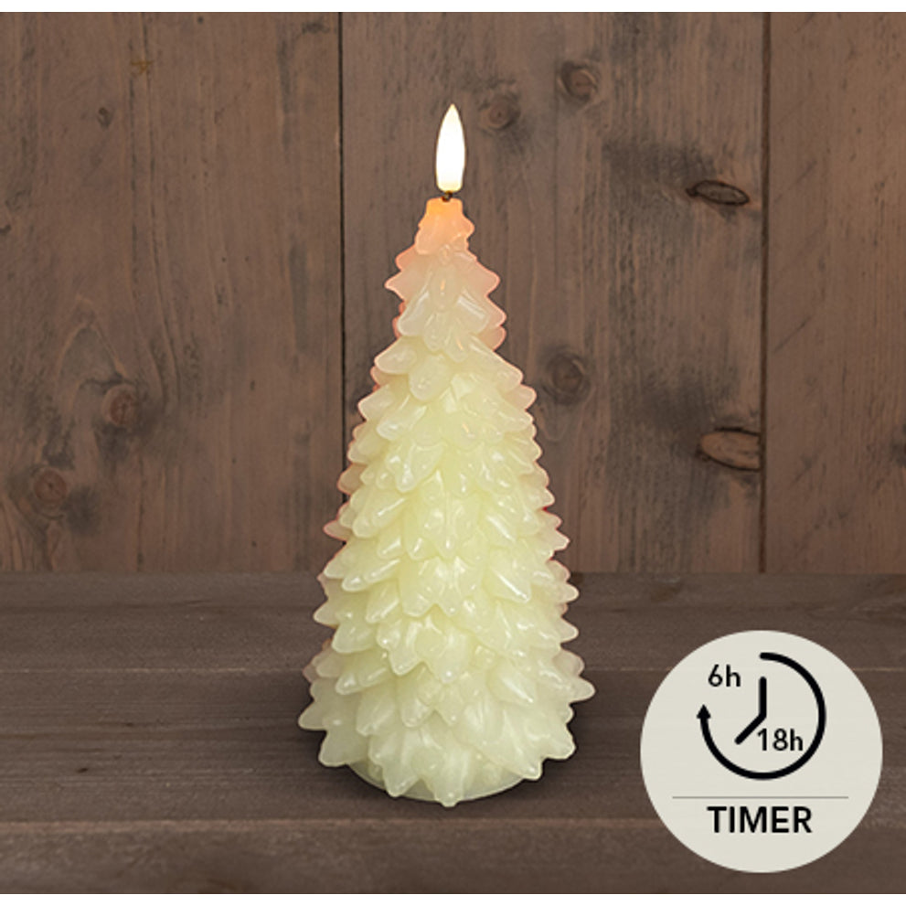 WEIHNACHTSBAUMKERZE B.O.T 3D DOCHT ELFENBEIN RUSTIKALES WACHS 9,5X20CM 2XAAA / TIMER