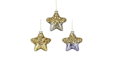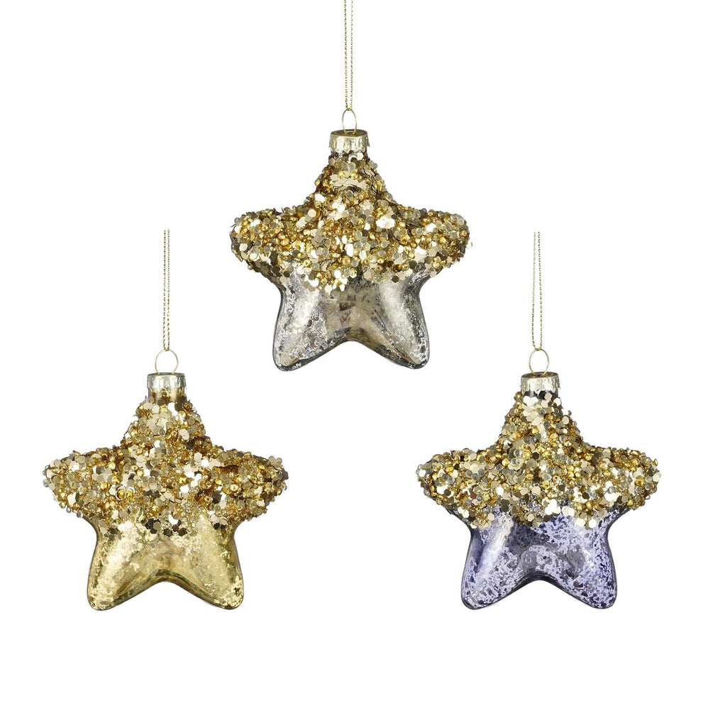 Ornament Stern Glas Silber Blau Gold 3 sortiert - h3xd8cm