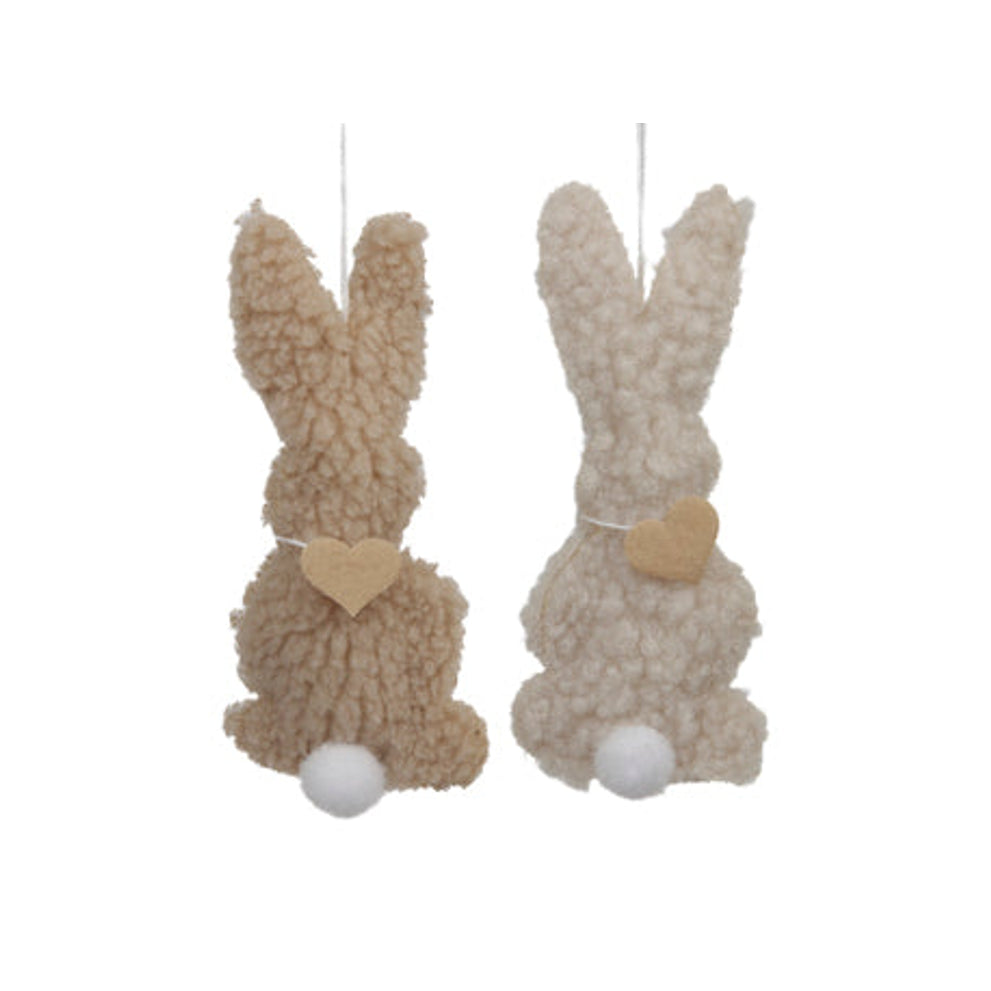 4 pieces fabric rabbits/hanging 2 ass. cream/beige 5.5x12 cm