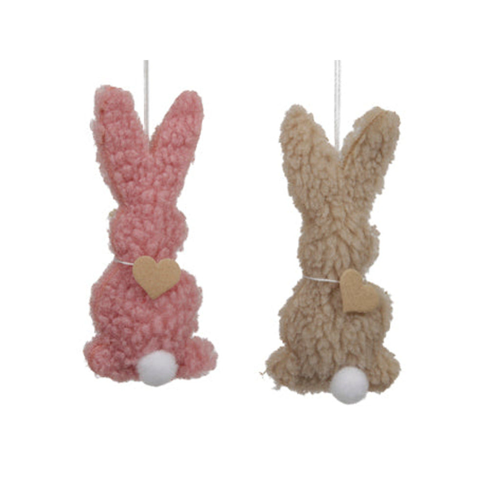 4 pieces fabric rabbits/hanging 2 ass. pink/beige 5.5x12 cm