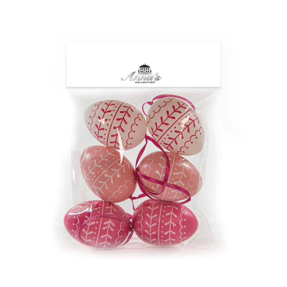 6 PCS EGG WITH PRINT 6CM WHITE/PINK/LIGHT PINK IN BAG