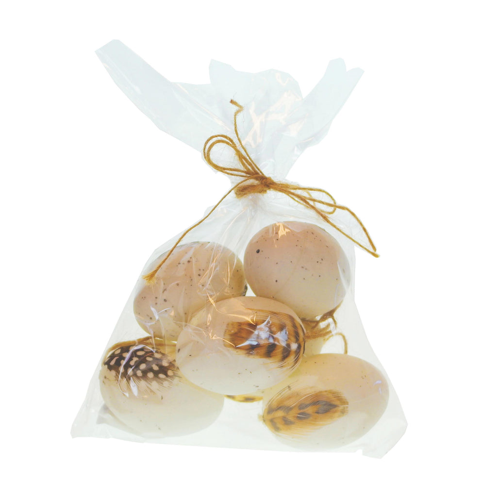 6 PCS EGG 5CM FEATHER/JUTE HANGER