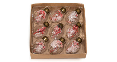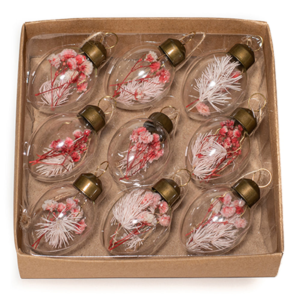 9 Glass Eggs 3x4.5cm with Dried Pink Flower/Pendant in Craft Box