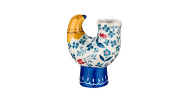 Aardewerk vaas floral bird blauw 12x7,2x15cm