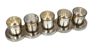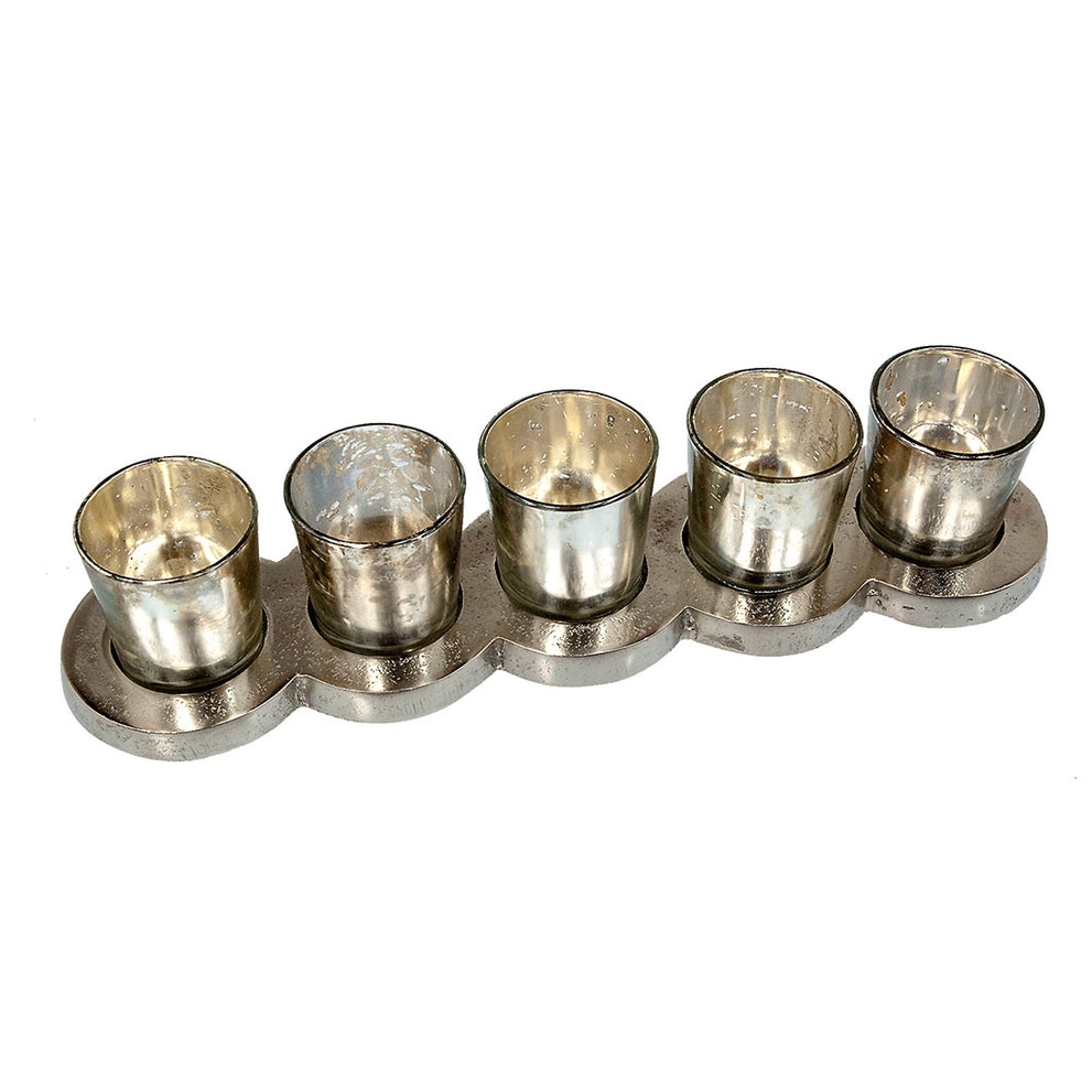Aluminum tray with 5 tea light holders 34x8x7cm Silver
