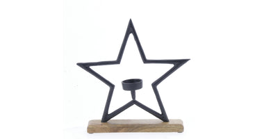 Aluminum Tealight Star Black on Mangowood Base 19x17cm