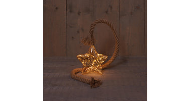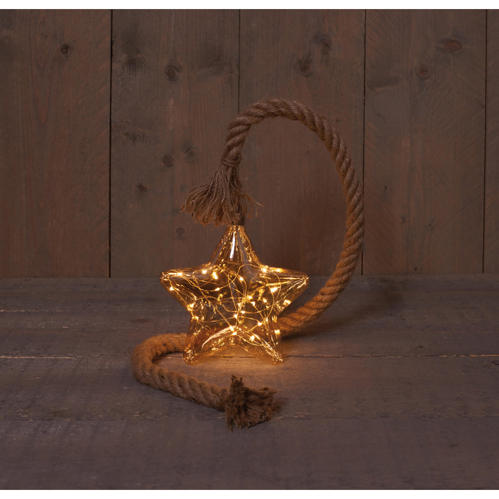 BO STAR GLASS GOLD 19CM ON 1M ROPE / 15 LED WARM WHITE 2XAA