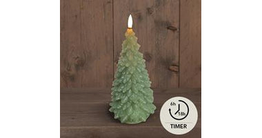 BOT 3D WICK JADE GREEN CHRISTMAS TREE CANDLE RUSTIC WAX 9.5X20CM 2AAA / TIMER