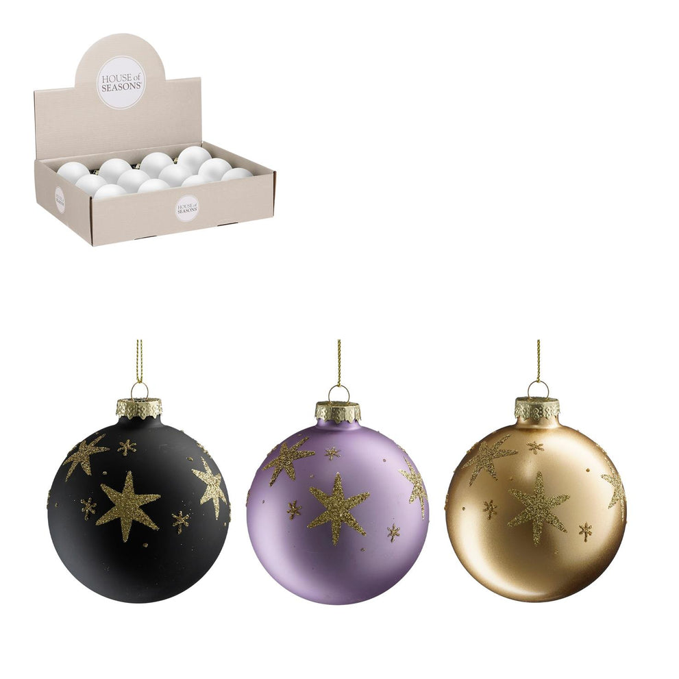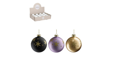 Ball glass star black l. purple gold 3 assorted display - d8cm