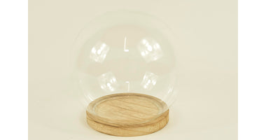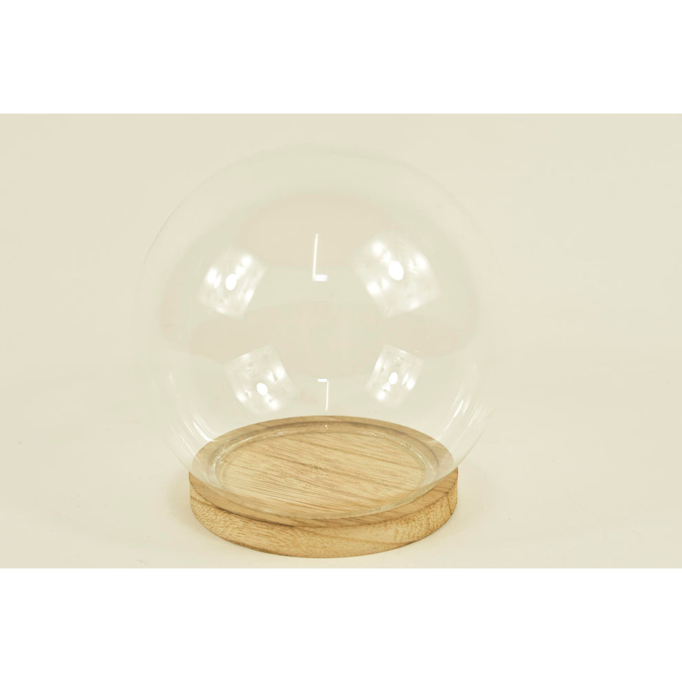 BELL GLASS BALL D13X14H ON WOODEN BASE NATURAL