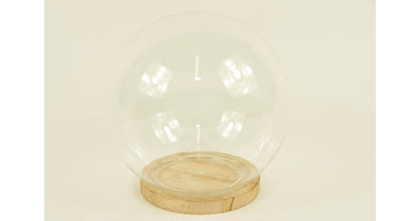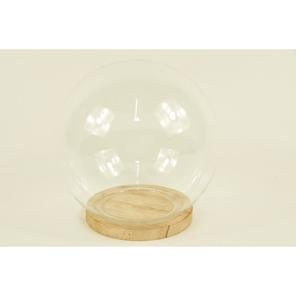 BELL GLASS BALL D15X15H ON WOODEN BASE NATURAL