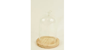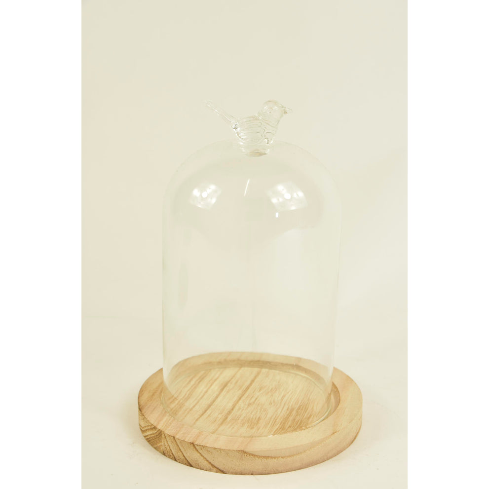 BELL GLASS BIRD D13X19H ON WOODEN BASE NATURAL