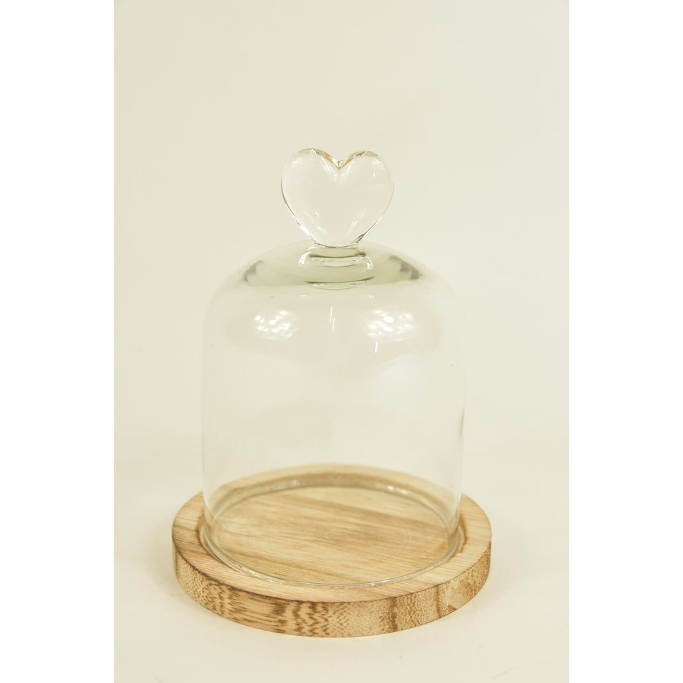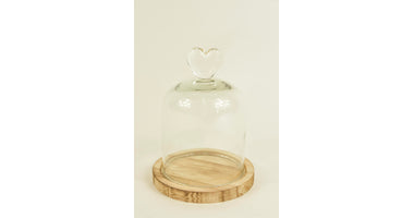 BELL GLASS HEART D10X13.5H ON WOODEN BASE NATURAL