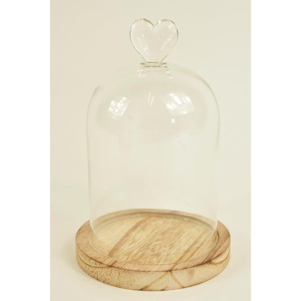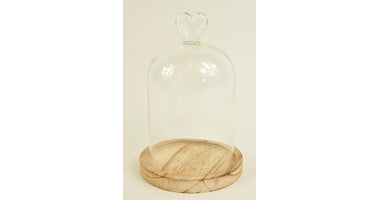 BELL GLASS HEART D11X16.5H ON WOODEN BASE NATURAL